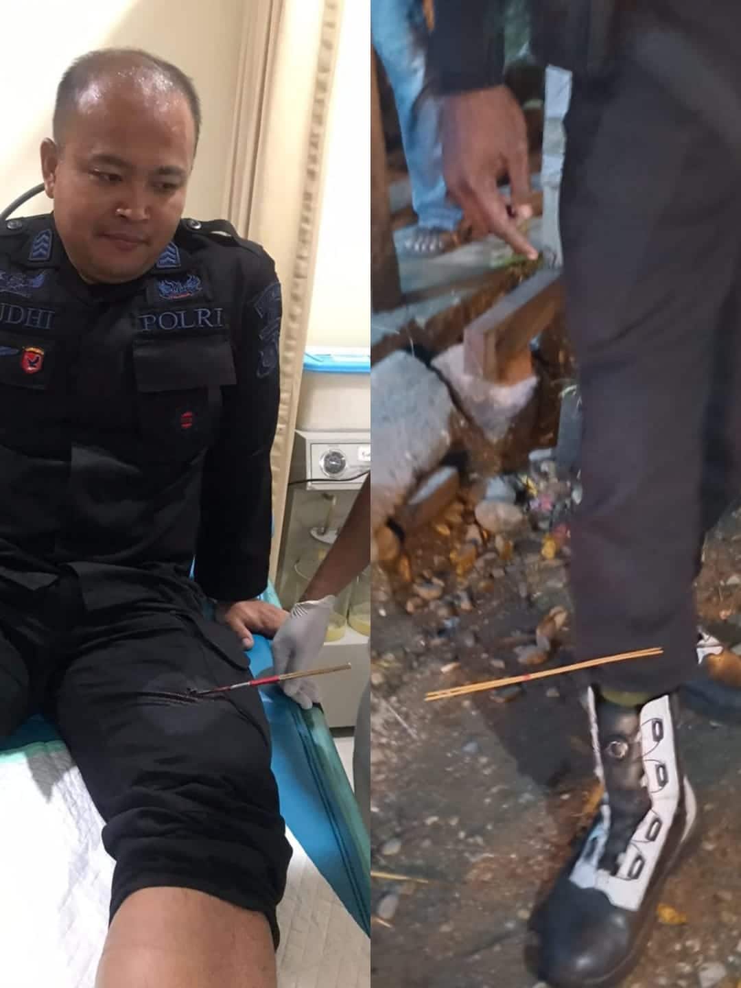 Dalam aksi tersebut, massa menyerang menggunakan batu dan panah wayer. Akibat penyerangan itu, dua anggota kepolisian dilaporkan terluka. Satu anggota terkena panah wayer yang tertancap di paha, sementara satu anggota lainnya terkena panah wayer yang mengenai celana.