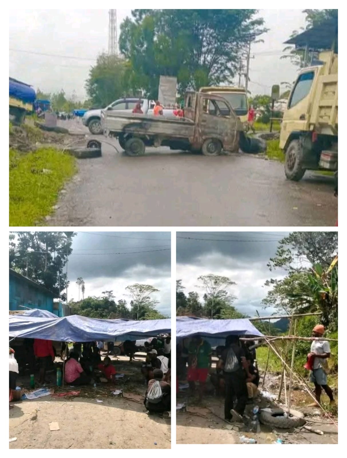 Warga menutup badan jalan dengan terpal dan penjagaan ketat, sehingga seluruh kendaraan roda dua dan roda empat dilarang melintas, baik dari arah Jayapura menuju Wamena maupun sebaliknya.