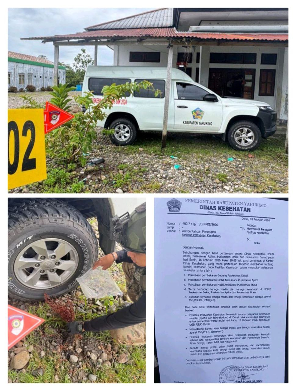 “Fasilitas pelayanan kesehatan termasuk sarana pelayanan kesehatan swasta (apotek dan laboratorium) di Dekai tidak melakukan pelayanan untuk sementara waktu mulai hari Rabu, 18 Februari 2026, terkecuali UGD RSUD Dekai,” demikian penegasan Kepala Dinas Kesehatan Kabupaten Yahukimo, dr. Aser Wobolim seperti tertuang dalam surat Nomor 400.7/16/DINKES/2026 tertanggal 18 Februari 2026.