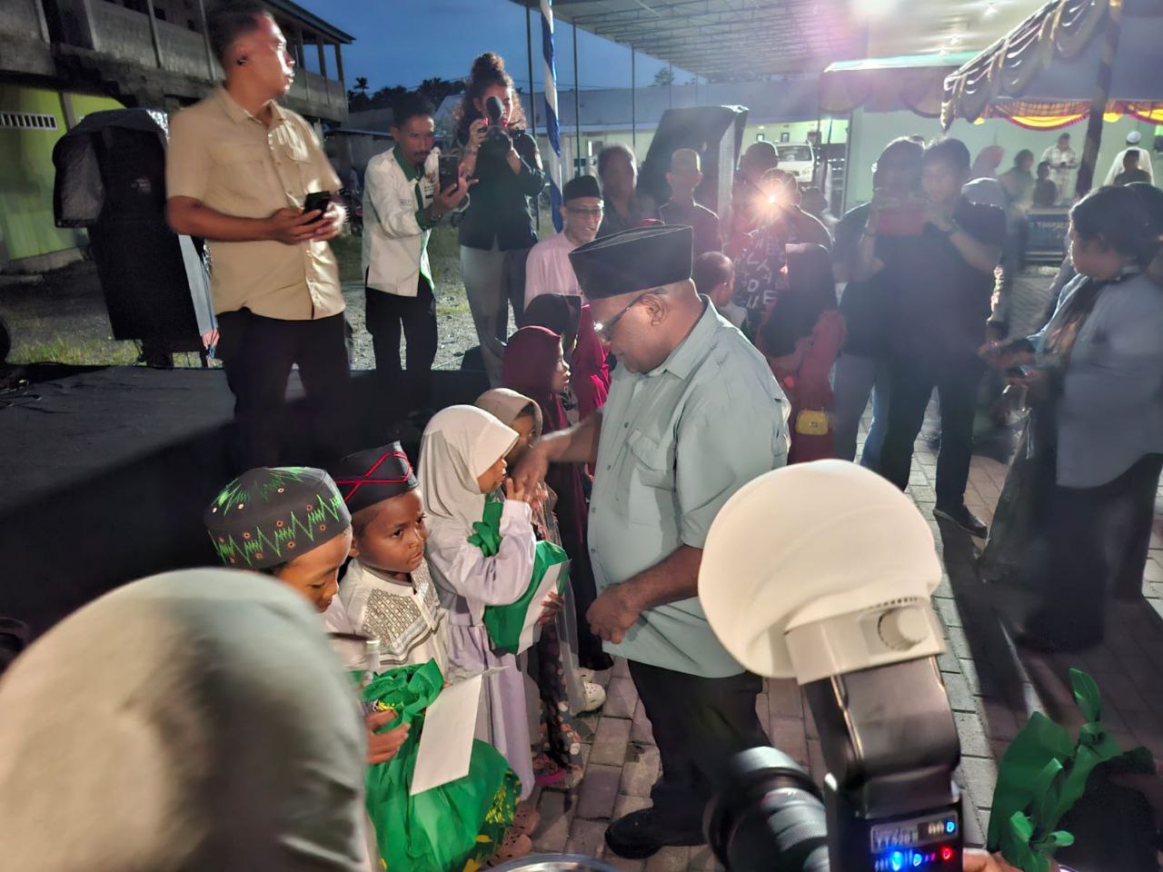 Acara ditutup pemberian santunan kepada yatim dan khotib dari Gubernur Papua Tengah dan Bupati Mimika.(moa)