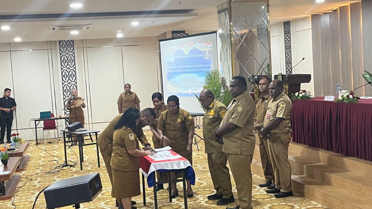 TIimika, fajarpapua.com – Pemerintah Kabupaten (Pemkab) Mimika melakukan prosesi serah terima jabatan (sertijab) pejabat pimpinan tinggi pratama dan pejabat administrator di lingkungan Pemkab Mimika.